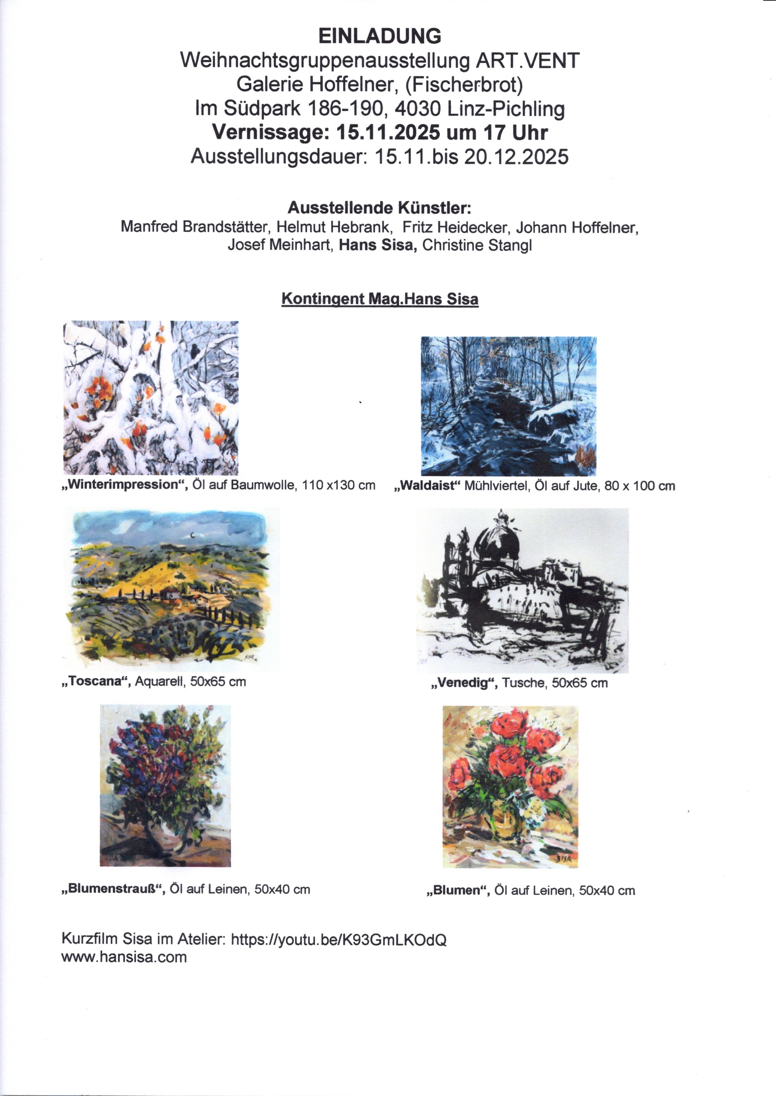 Teilnahme an ART-VENT Weihnachtsgruppenausstellung Einladung |